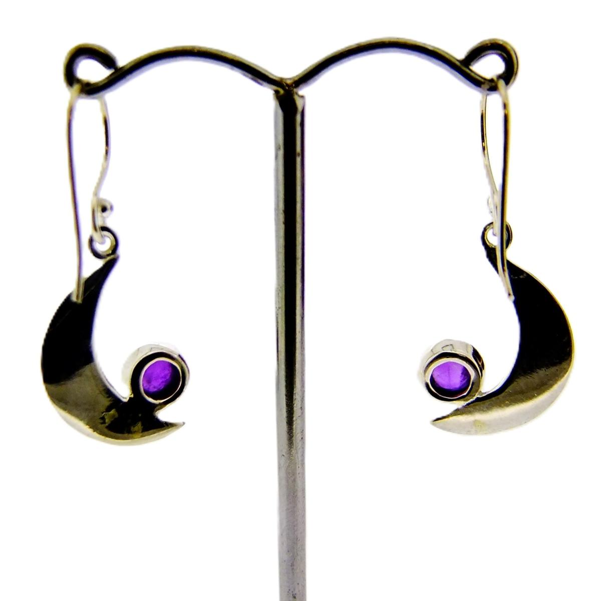 In beaten finish Crescent Moon design featuring a single dome polished Cabochon in Amethyst.