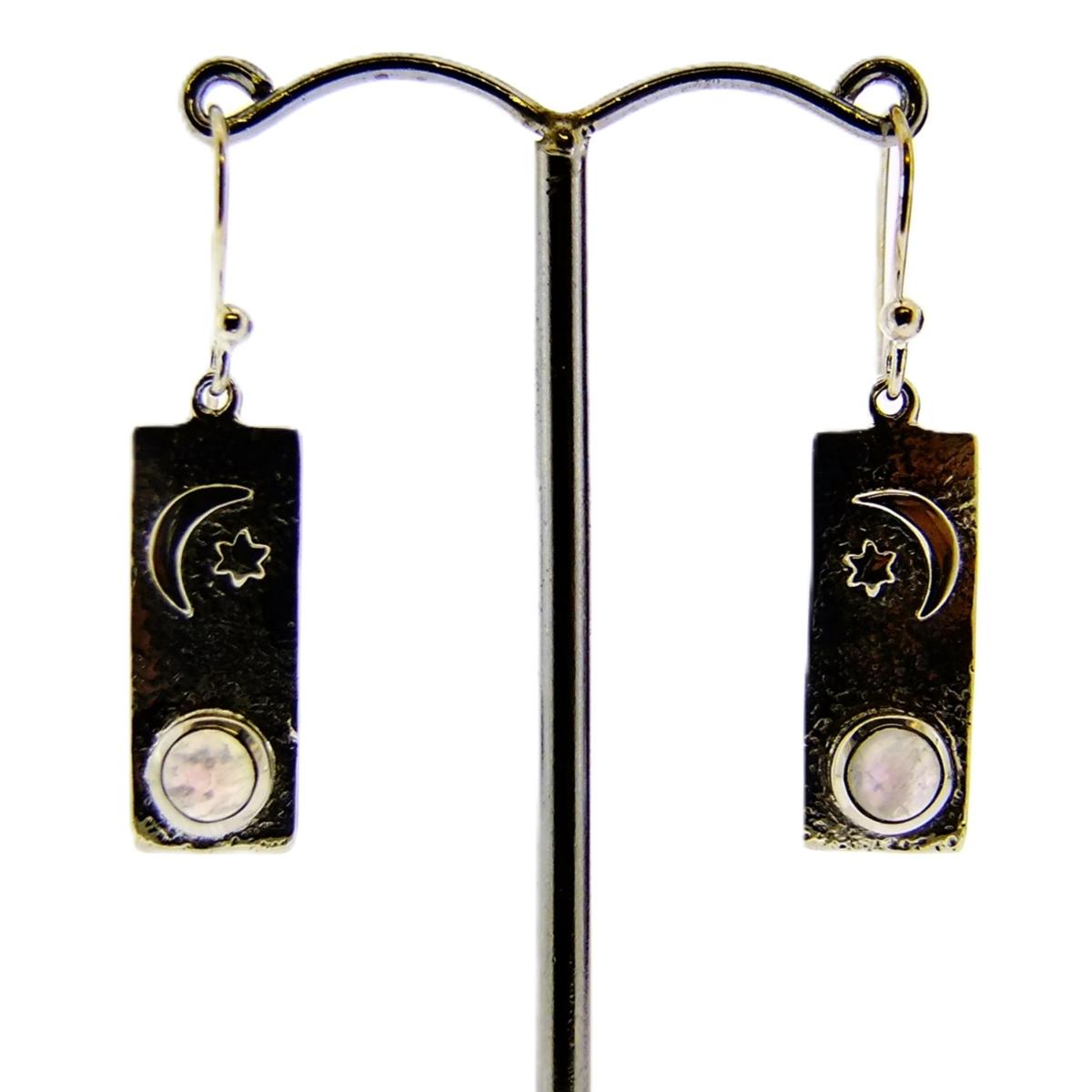 Rectangle in shape with beaten finish featuring Moon & Star design and a single dome polished Cabochon in Moonstone.