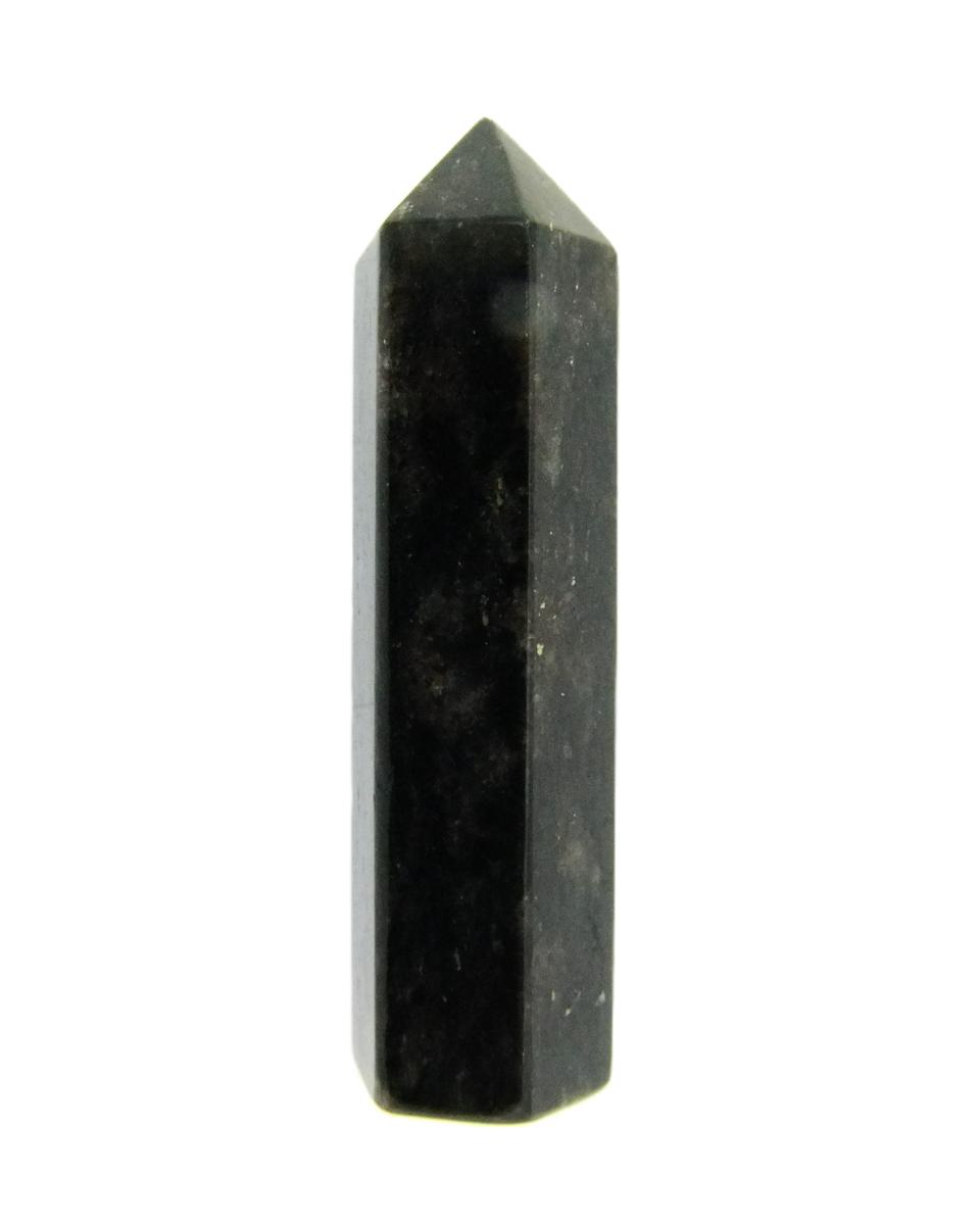 Arfvedsonite polished point specimen featuring flat cut base to stand..