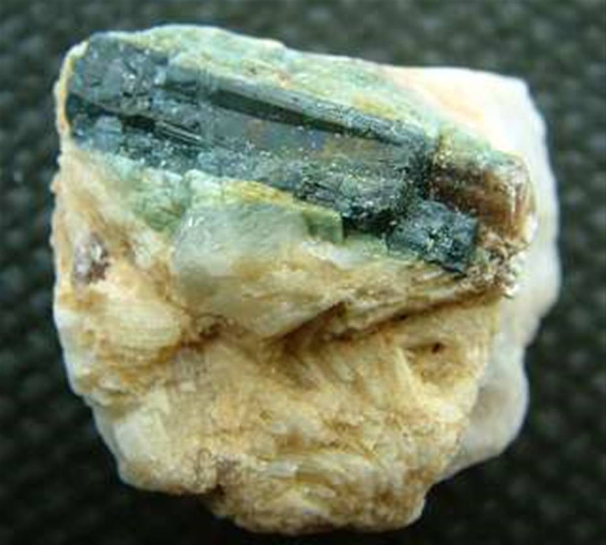 • BI COLOURED GREEN TOURMALINE ON FELDSPAR CRYSTAL SPECIMEN. SP2819