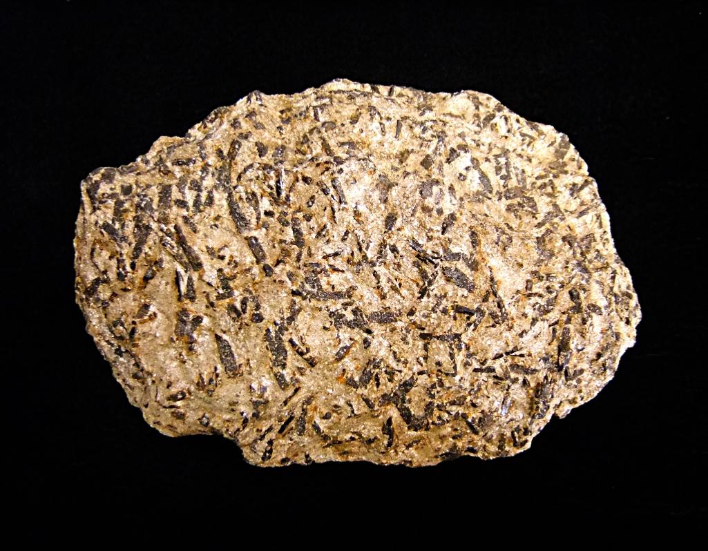 BLACK TOURMALINE CRYSTAL FORMATIONS IN MICA SHIST MATRIX.   SP11182SHLF