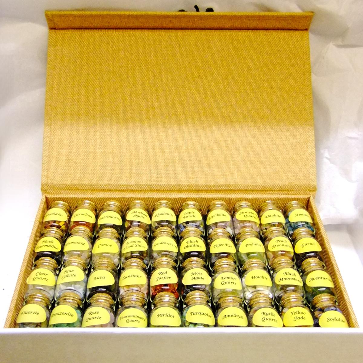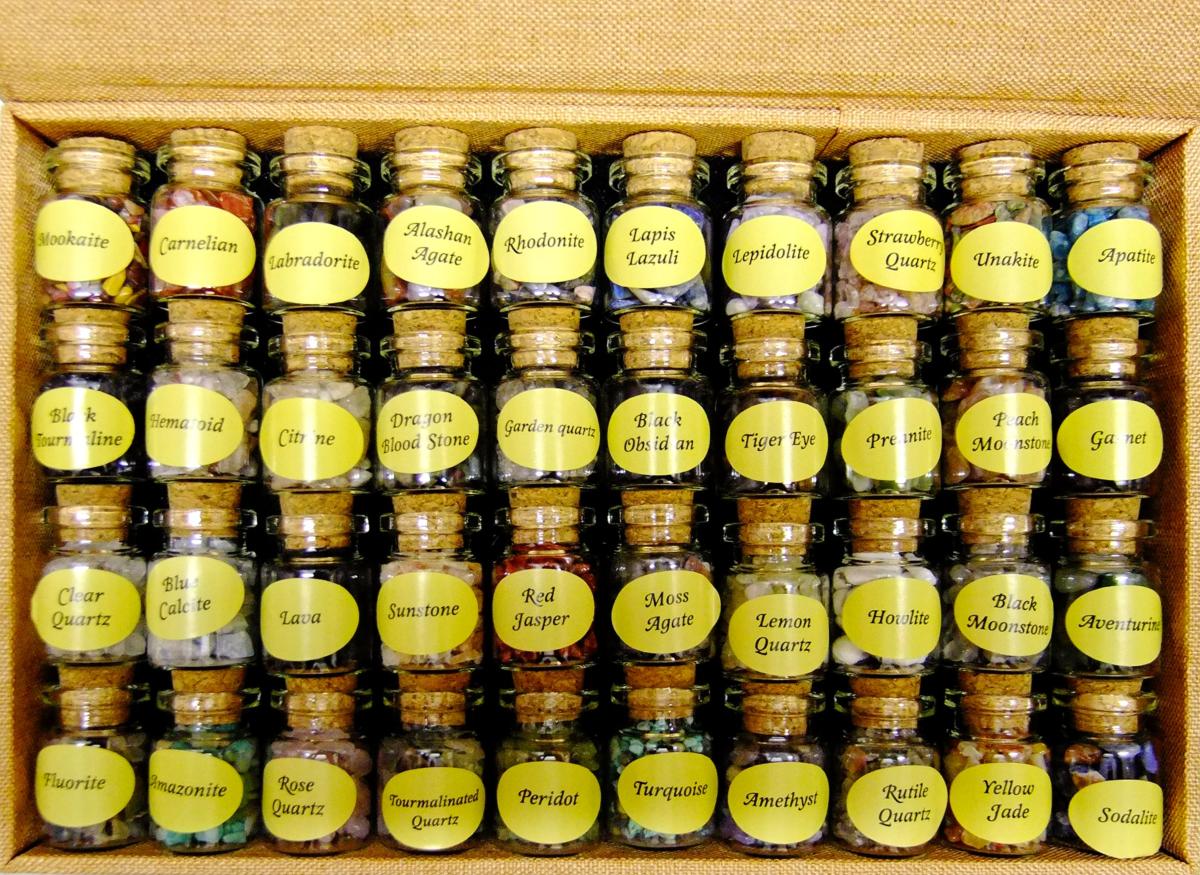 A Selection of Mini Sized Bottles Filled With Gemstone Chips As Photos.