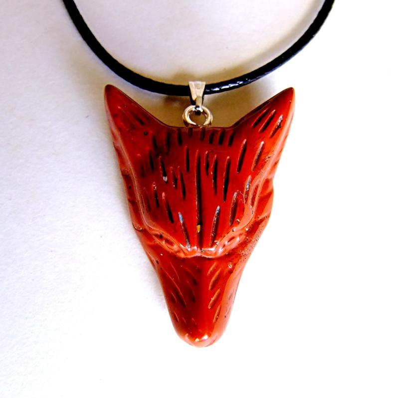 • CARVED WOLF'S HEAD PENDANT IN RED JASPER ON WAXED CORD.    SPR13951PEND