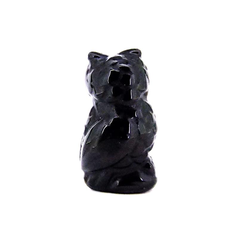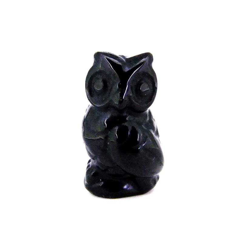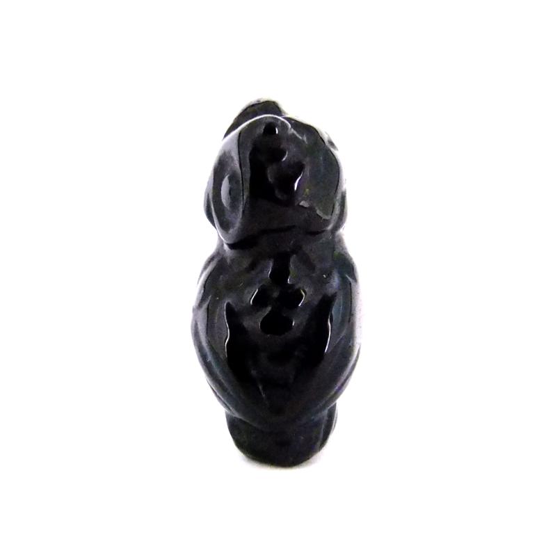 CARVING OF AN OWL IN BLUE BLACK OBSIDIAN.
