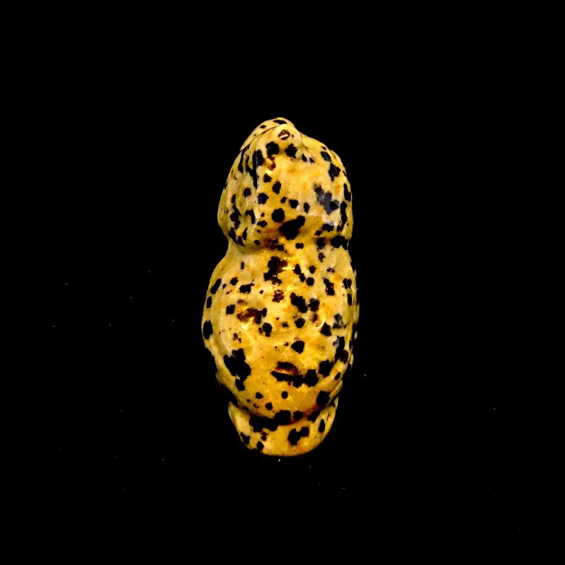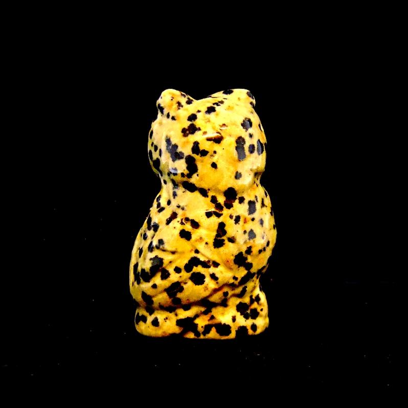 • CARVING OF AN OWL IN DALMATIAN JASPER.  SPR14467POL