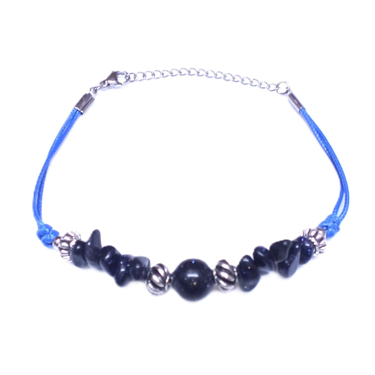 Chip & Bead Bracelet Featuring Blue Goldstone & Silver Plated Beads On A Blue Cord With Lobster Style Clasp With Extender Chain. SPR16981BR
