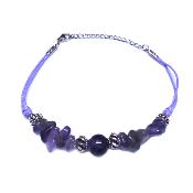 Chip & Bead Necklace Featuring Amethyst & Silver Plated Beads And a Heart Pendant On Purple Cord.   SPR16977NEC