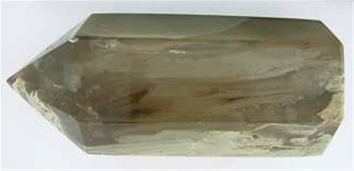 CHLORITE IN SMOKEY QUARTZ POLISHED POINT SPECIMEN. 153 X 68 X 58MM APROX. 1.028Kg.