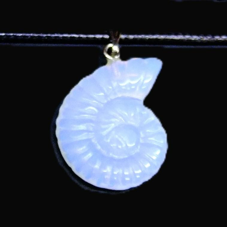 • Gemstone Ammonite Pendant In Opalite On Waxed Cotton Cord.   SPR16847
