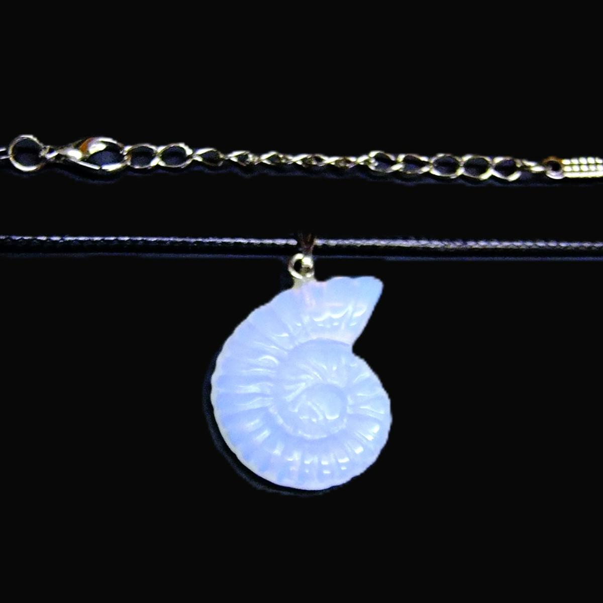 Gemstone Ammonite Pendant In Opalite On Waxed Cotton Cord. SPR16847