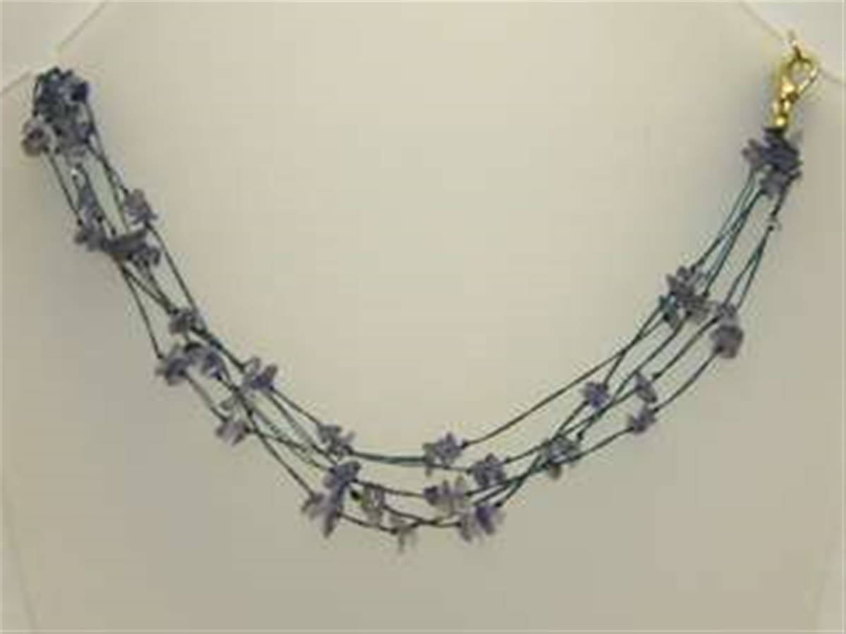 IOLITE THREADED GEM CHIP NECKLACE. 18" LONG. 12g. FEATURING A GOLD PLATED LOBSTER STYLE CLASP.