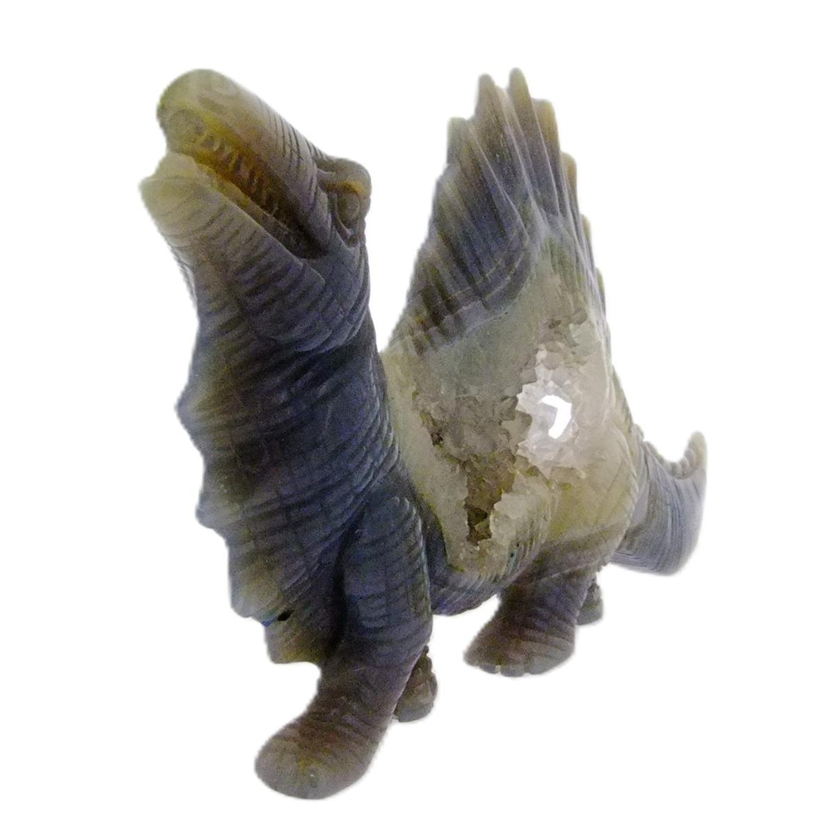 • Spinosaurus Dinosaur Sculpture Carved  From A Blue Agate With Quartz Geode.   SP16603SLF