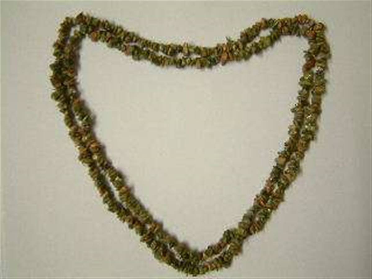 UNAKITE CHIP NECKLACE. 36". 35g.